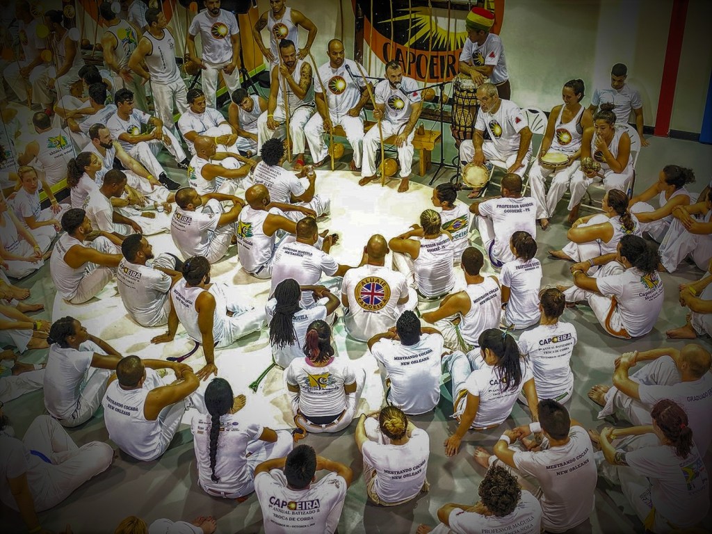 Like many capoeira schools, our annual Batizado & Troca de Corda is a celebration of our students’ training and growth over the year. For new students, it is a chance to be initiated into the art of capoeira and receive one’s first Corda (equivalent to a rope or belt in other martial arts). Older students will often advance to the next level corda.